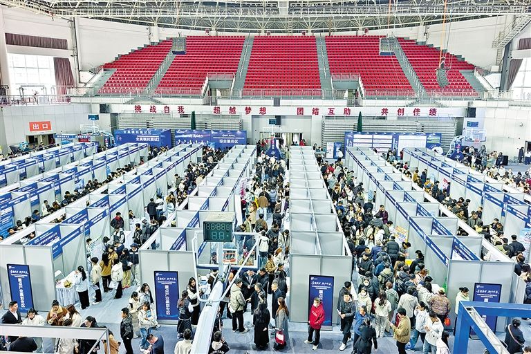 招聘會(huì)現(xiàn)場(chǎng)人頭攢動(dòng)。