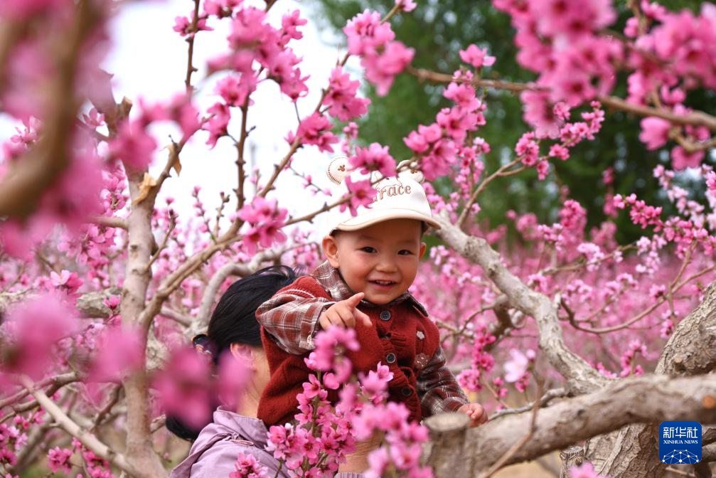 4月12日,游人在甘肅省敦煌市七里鎮(zhèn)桃產(chǎn)業(yè)示范基地游玩。
